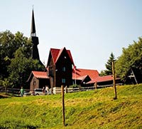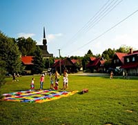 Poniżej kościoła rozciąga się malownicza łąka, na której odbywają się różne spotkania i nabożeństwa „pod chmurką”. Służy temu m.in. wyjątkowy ołtarz zrobiony z wydobytego z dna Dunajca wielkiego, liczącego kilka tysięcy lat dębu.