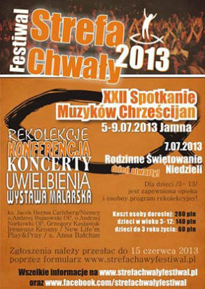 To unikatowy projekt, którego celem jest stworzenie przestrzeni dla spotkania osób kierujących się w życiu codziennym ponadczasowymi wartościami chrześcijańskimi. W jednym miejscu i czasie gromadzą się ludzie świata kultury, mediów, sportu, ale także polityki i biznesu. Tegoroczne, ósme już, spotkania w ramach Festiwalu „Strefa Chwały” miały miejsce w dniach 5-9 lipca na Jamnej, słynnej Respubice Dominicana ojca Jana Góry, charyzmatycznego duszpasterza młodzieży, twórcy Lednicy – ogólnopolskich spotkań młodzieży na lednickich błoniach koło Gniezna, gromadzących co roku po około sto tysięcy młodych chrześcijan.